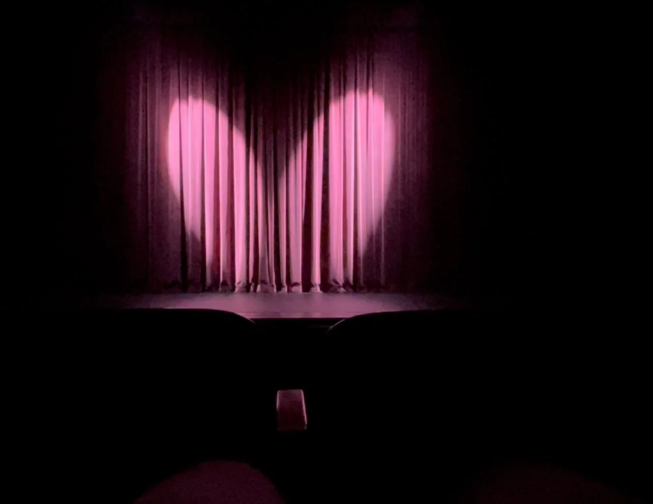 To show others in a dance form that there is a way to live in a higher vibrational state of love and unity while in the body and beyond. During our on stage rehearsals, the theater manager played around with the lights towards the end of our dance. Two nights in a row a heart shape showed up on the red curtains. Of course I snapped a photo and smiled knowing we were fulfilling our purpose, to leave the audience with this feeling of love.