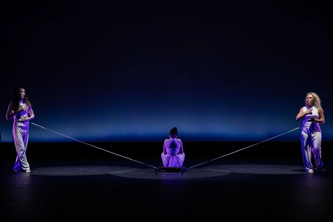 Knowing inspiration comes best over good food, Viktoria and I had gone to Seabirds, a restaurant in Costa Mesa, CA after a friend’s art gallery exhibit in April 2024. Here we brainstormed the initial idea of a pedestrian style dance with off-white, simple costumes. Coming back here in September 2025 after our dance got approved, casted with three dancers (Jamie Brinkman, Wyatt Davis and Viktoria Tauz) and started our second week of rehearsals, Viktoria dropped the idea of having a single dancer (herself) be anchored in the center with two other dancers (Jamie and Wyatt) attached to this core moving within each of their hemispheres. A masculine, feminine, and intuition type of relationship. The comical part was she said it in such a simple way like “hmm…Yes, let’s do this. It will be no problem”. Fast forward to the following weekend where my father who is an engineer and I spent roughly eight hours trying to figure out how to make this work. Bringing an idea into form is not always an easy task. Asking me the right kinds of questions, my father figured out we wanted something that allowed the dancers to move and be drawn outwards while having a slightly stronger pull inward. The tricky part was doing this without any cords or rope hanging on the ground the dancers could trip over. Thank goodness for my father’s brilliant mind where the idea of using dog leashes attached to some kind of lazy susan flowed through. We introduced our concept to Justin Morris, our dance faculty advisor, who being a highly artistic, interdisciplinary innovator himself, loved the idea. Only challenge now was executing it.